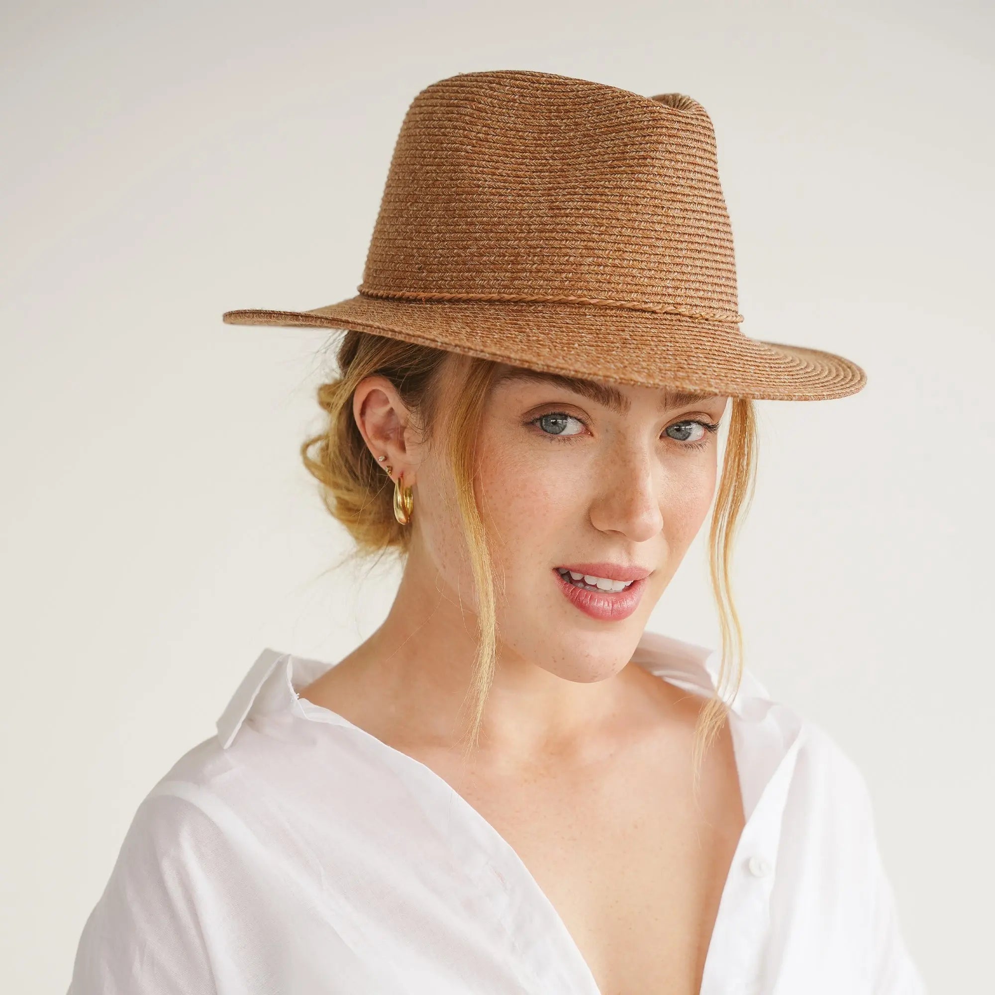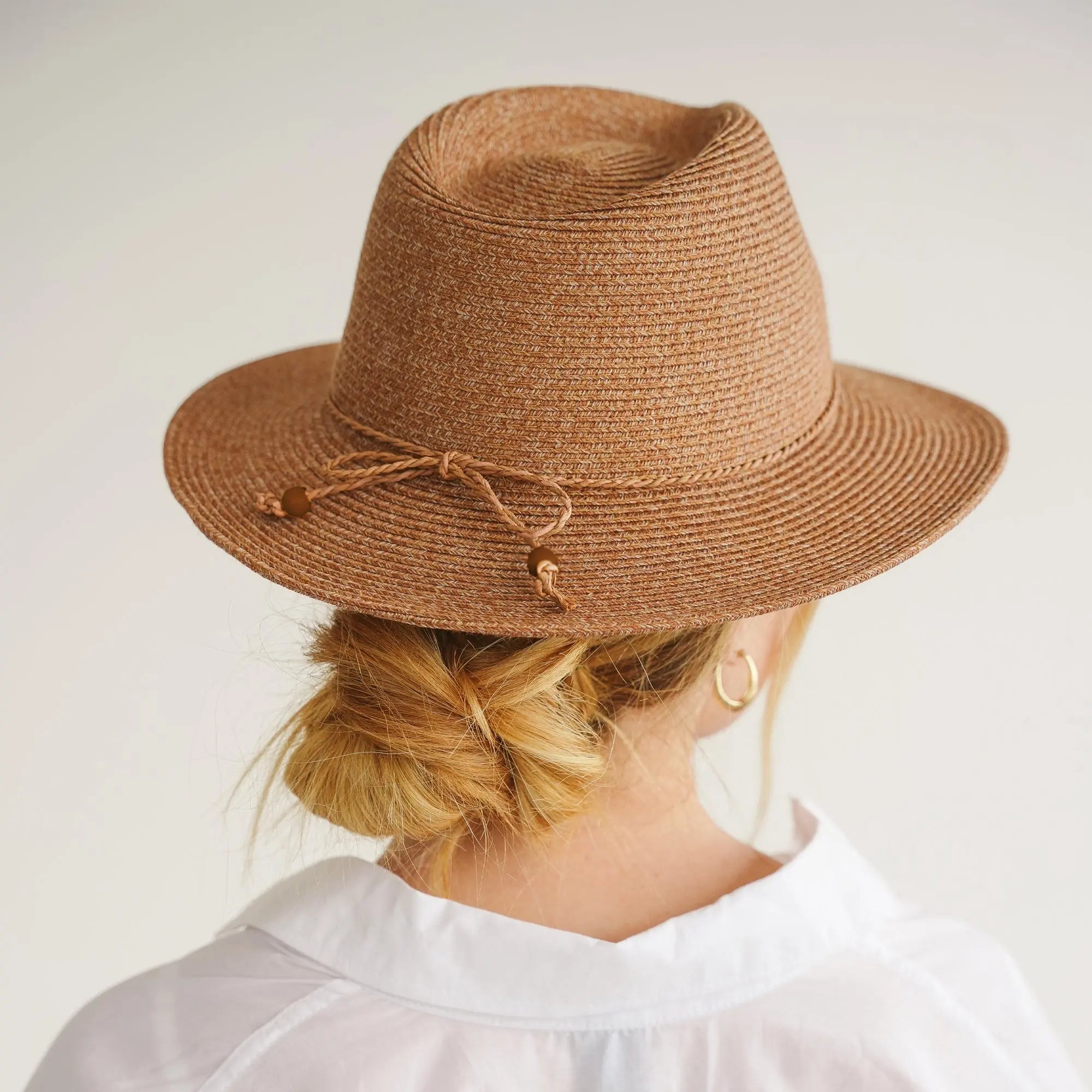 The Avoca is a feminine Fedora sun hat with a shallow crown, finished with an elegant twisted Raffia trim, bow at the back, and genuine wooden beads. Available in soft pastel shades, this UPF50+ certified hat offers maximum comfort for sunny escapes. Travel-ready and packable, it’s crafted from durable Flexibraid material that retains its shape and colourfast quality wherever your journey takes you.